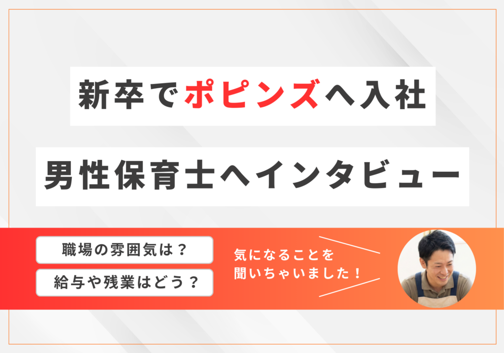 【評判】新卒で「株式会社ポピンズ」運営の保育園に就職した男性保育士にインタビュー!【年収・業務内容・社風をリアルにお伝え】