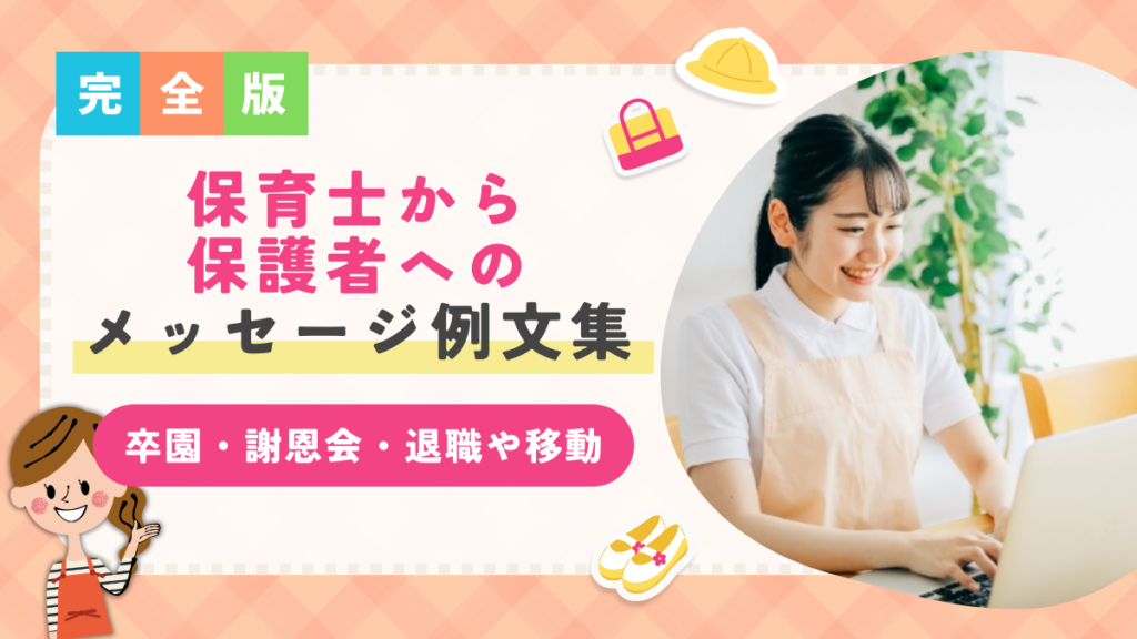 年度末には保育士から保護者へのメッセージを伝える機会が度々ありますが、どのように気持ちを伝えれば良いのか、悩むこともありますよね。 本記事では年度末の様々なシーンでの保育士から保護者へのメッセージの伝え方や例文を解説します。 ぜひ参考にし... -