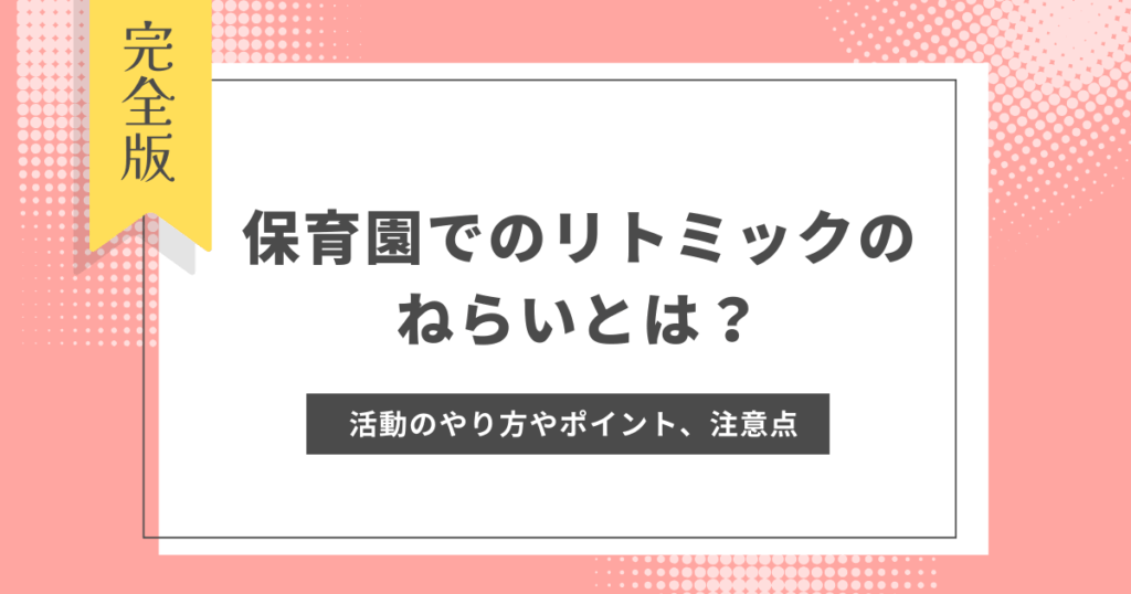リトミックを活動に取り入れる際、ねらいや活動内容に迷ったことはありませんか? 保育園では年齢や発達段階に応じたねらいを設定し、無理なく楽しく参加できる活動内容にすることが大切です。 本記事では、具体的なねらいや活動のポイント、注意すべき点... -