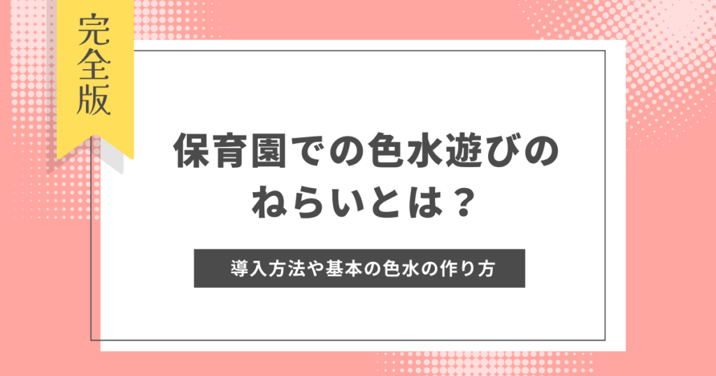 絵の具で水に色をつけたり、何色かの水を混ぜて色の変化を楽しんだりと、様々な楽しみ方ができるのが色水遊びの醍醐味です。 「色水遊びのバリエーションがなくなってきた」「何をねらいにして色水遊びを行おう?」とお困りの保育士の方のために、本記事で... -
