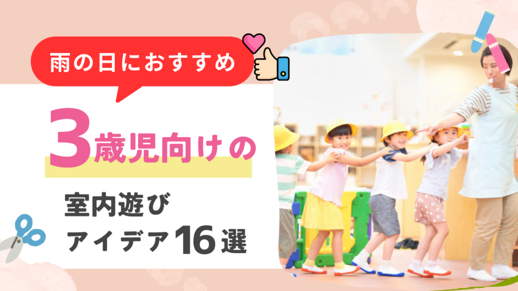 あいにくの天候で外に遊びに行けない時、室内で何をして遊ぶか迷いますよね。 登園時は晴れていたのに、急に雨が降りだしてしまうと室内遊びの準備ができていないこともあるでしょう。 本記事では、3歳児におすすめの雨の日でもできる室内遊びを12個紹介し... -
